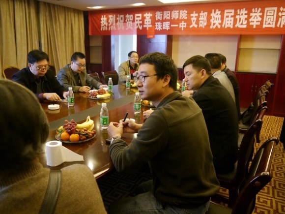 欧阳陈华代表新一届支委会作了发言,表示继续发扬衡阳师院支部的优良传统,夯实基础,积极参加各种社会活动,搞好师院支部的各项工作。
